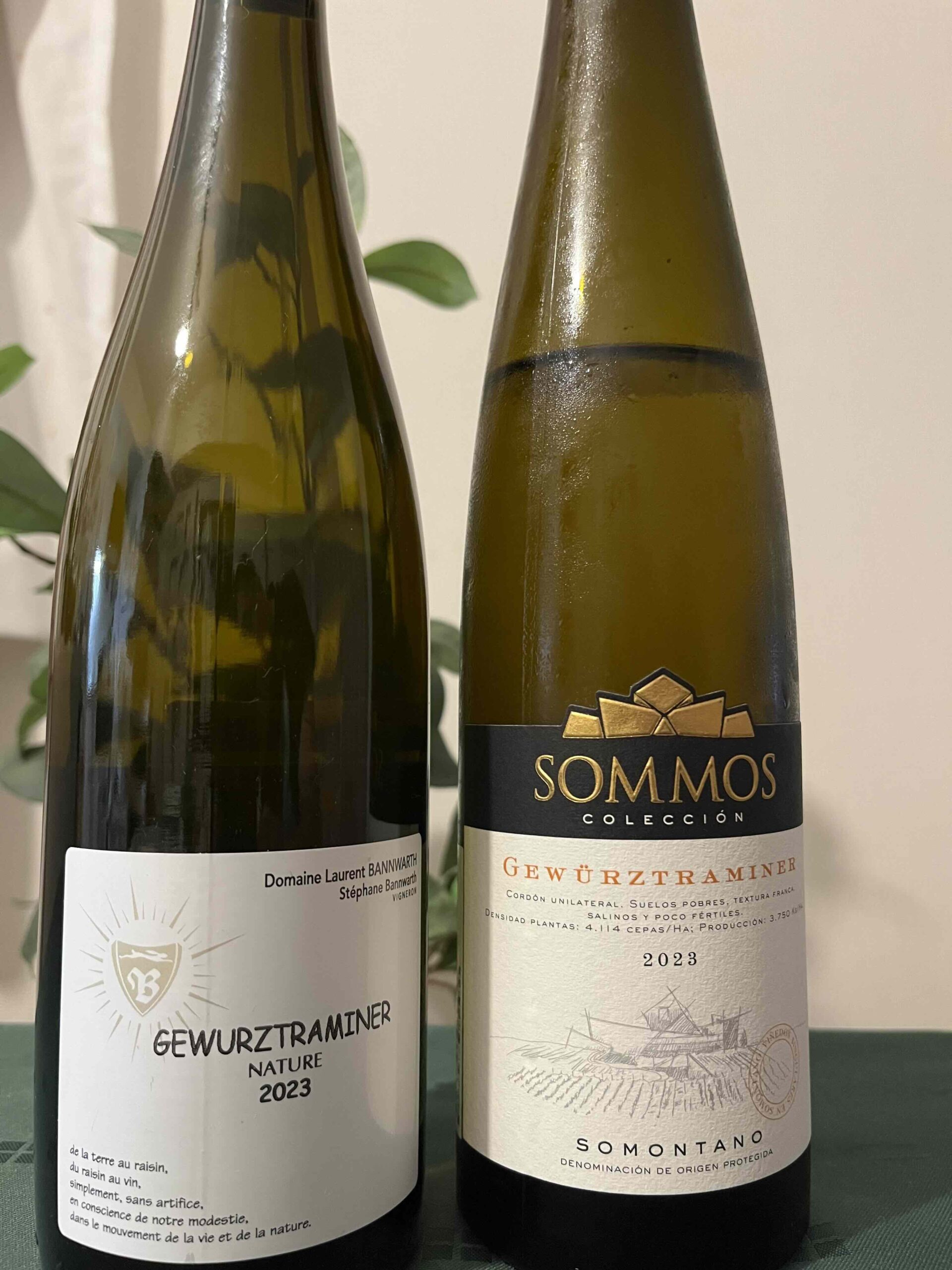 Gewurztraminer飲み比べ一本目は、スペイン・ピレネー山脈の南側に位置するSomontano DOPのSommos Colección Gewürztraminer。スペインバルで試したものを今回ボトルを入手した。もう一本は、 先日EDEL Natureを試したアルザスのDomaine Laurent Bannwarth Gewurztraminer。