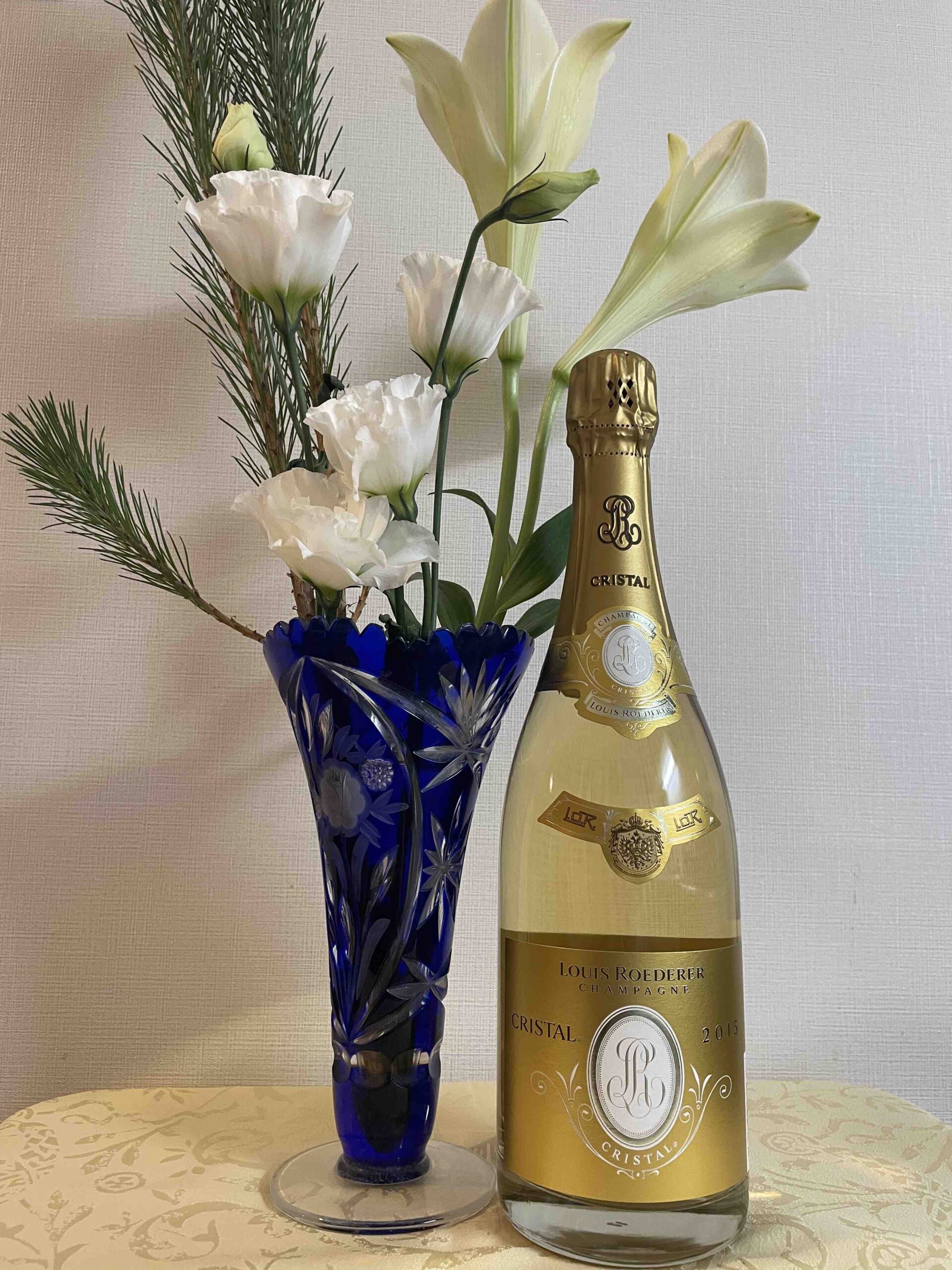 Cristalは、その外観からして他のChampagneとは一線を画している。1876年、ロシア皇帝アレクサンドル2世のために造られたこのChampagneは、暗殺を恐れた皇帝の要望により、無色透明で底が平らなボトルを採用した。毒物や爆弾を仕込ませないための工夫だったとされている。現在のボトルデザインは当時とは異なる部分もあるだろうが、ラベルからネックのホイルカプセルに至るまで、すべてがゴールドで統一されている。透明なボトル越しに見える、いわゆる「シャンパンゴールド」のワインの色合いと相まって、Cristalはまるで光を放つかのような輝きを湛えている。